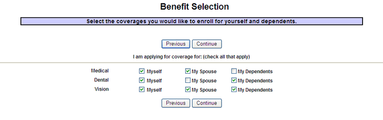 The employee must indicate if they are applying or waiving coverage for themselves or their dependents.
